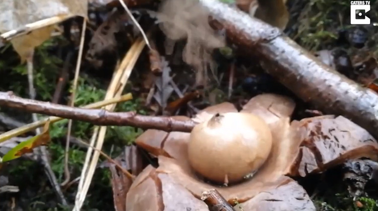 Các bào tử bên trong nấm gaestrum, hay nấm ngôi sao đất, thoát ra khi gặp tác động từ bên ngoài.