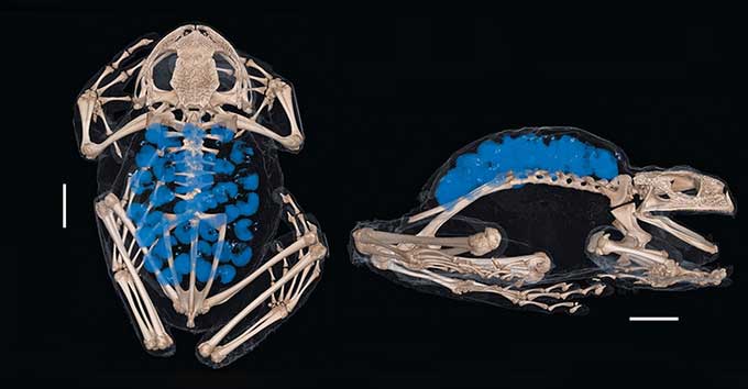 Ảnh CT scan cho thấy cấy trúc xương và phôi trứng bên trong túi ấp của G. gemma. (Ảnh: Novataxa).