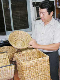 Nhóm nghiên cứu còn giúp nông dân làm kinh tế với loài cỏ hến biển. Trong ảnh: những sản phẩm được đan bằng cỏ hến biển |