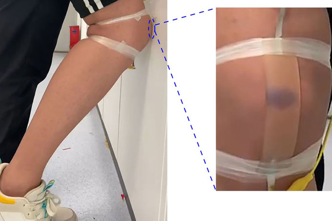 Thí nghiệm khiến da nhân tạo I-skin bầm tím. (Ảnh: ACS Applied Materials & Interfaces).