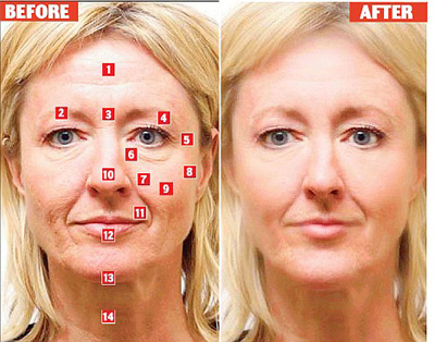 Có 14 vị trí khác nhau trên khuôn mặt và cổ để lựa chọn. |