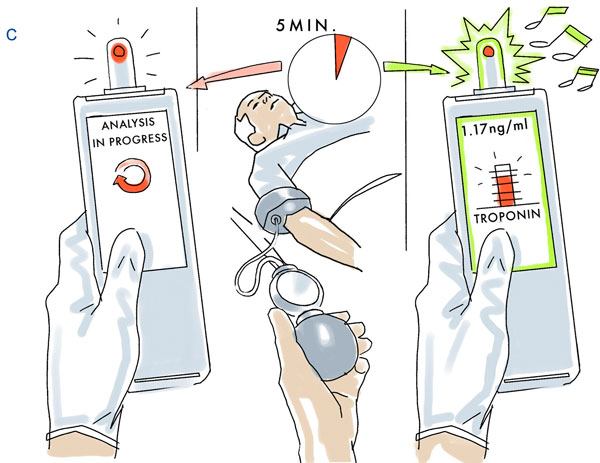 Trong những ca khẩn cấp như bệnh nhân bị suy tim, việc xét nghiệm tại chỗ sẽ giúp cho bác sĩ nhanh chóng chẩn đoán được tình trạng bệnh nhân và đưa ra phương án xử lý phú hợp. Quyết định mở động mạch vành kịp thời hay không sẽ liên quan đến khả năng cứu sống bệnh nhân.