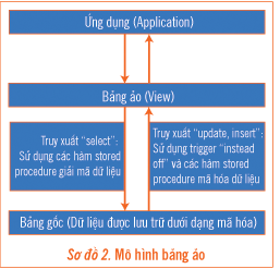Bảng ảo được tạo ra để mô phỏng dữ liệu trong bảng gốc. Khi thực thi lệnh “select”, dữ liệu sẽ được giải mã cho bảng ảo từ bảng gốc (đã được mã hóa). Khi thực thi lệnh “Insert, Update”, “instead of” trigger sẽ được thi hành và mã hóa dữ liệu xuống bảng gốc.