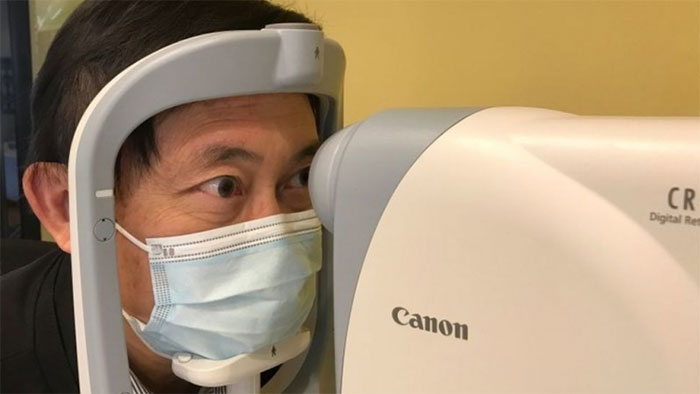 Giáo sư Benny Zee và chiếc máy ảnh để quét võng mạc - (Ảnh: Reuters).