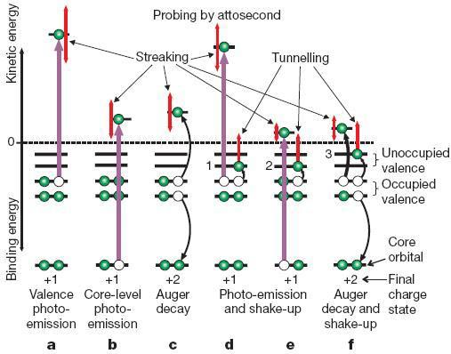 Ở quá trình thứ hai, nếu như xung kích thích có bước sóng ngắn hơn nhiều so với xung ion hóa, nó có thể bị đảo lại tại nhiều thời điểm theo chu kỳ của xung ion hóavà chỉ tại những điểm này điện tử mới có khả năng nhảy đến điểm khả dĩ cho chui hầm. Và bằng cách ghi lại quá trình điện tử chui hầm trong chu kỳ của xung ion hóa, một bức tranh của việc điện tử từ từ thoát ra khỏi nguyên tử có thể phục hồi lại.