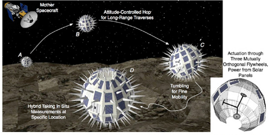 Thế hệ robot "nhím" sẽ là thiết kế được các nhà thám hiểm ưa chuộng vì chúng có khả năng di chuyển trên nhiều địa hình, như dễ dàng băng qua các hẻm núi và nhiều chướng ngại vật khác nhau. Mỗi robot chứa 3 dĩa, xoay được trên cả 3 trục, cho phép chúng quay tròn ở các tốc độ khác nhau để tạo ra nội lực giúp nó di chuyển. Nhờ đó, một vòng quay nhanh có thể giúp nó nhảy lên và tốc độ quay tăng mạnh sẽ làm nó nhảy tới và có thể di chuyển khắp hành tinh. Cách "đi" này giúp nó không cần nhiều năng lượng khi thám hiểm các hành tinh.