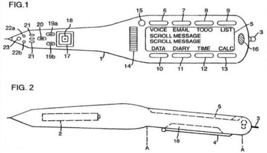 Văn phòng Đăng ký tên thương mại và Bằng sáng chế của Mỹ vừa cấp lại cho Apple giấy phát minh một dạng thiết bị vi tính di động nằm gọn trong một cây viết, bổ sung mạng điện thoại và khả năng GPS.