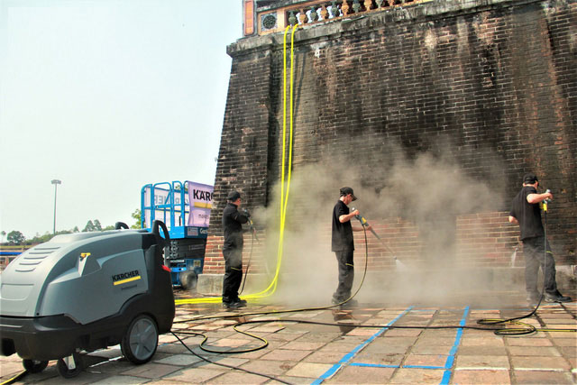 Vừa qua, Trung tâm Bảo tồn Di tích Cố đô Huế - tỉnh Thừa Thiên Huế vừa phối hợp với Karcher, nhà cung cấp hàng đầu thế giới về công nghệ làm sạch thực hiện việc làm sạch công trình Ngọ Môn tại Đại nội Huế.