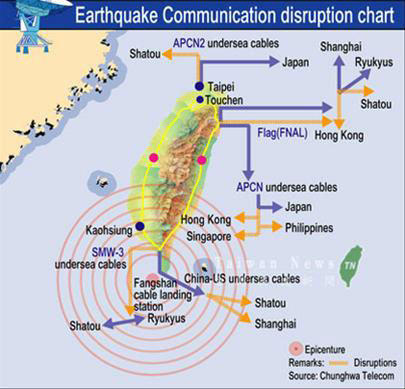 Với các phương án dự phòng và định tuyến sang các hướng khác, mạng viễn thông các nước châu Á đang dần hồi phục. Hãng viễn thông lớn nhất Đài Loan Chunghwa Telecom đang là đơn vị triển khai nhanh nhất việc sửa chữa cáp quang. Họ đã nâng lên được 60% lưu lượng cho các cuộc gọi thay vì chỉ 40% của ngày hôm trước. Các cuộc gọi đi Nhật đã nâng lên 70% so với 11% của hôm trước, gọi đi Trung Quốc lên 55% so với 10%. Hãng này cho biết họ có thể thiệt hại hơn 4,6 triệu USD sau vụ đứt cáp này. Chunghwa Telecom nói họ đã cho bốn tàu xuất phát từ Nhật, Singapore và Philippines đi sửa chữa sự cố đứt cáp nhưng đến ngày 2-1-2007 mới có thể bắt đầu công việc và phải mất ít nhất hai tuần để hoàn tất. Hãng China Telecom xác định sáu đường cáp đã bị đứt ở khu vực cách phía nam Đài Loan 15km.
