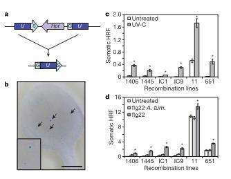 Để có thể định lượng được tần số tái tổ hợp, người ta dựa trên hệ thống GUS fusion thiết kế sẵn. Trong đó, mẫu đã biến nạp hệ thống GUS fusion được giữ trong điều kiện chống tái tổ hợp trên môi trường chứa Hygromycin; khi không có kháng sinh chọn lọc, tái tổ hợp nếu có xảy ra sẽ tạo thành GUS nguyên vẹn và biểu hiện thành enzyme có hoạt tính. Điểm màu càng cao, tần số tái tổ hợp càng lớn.