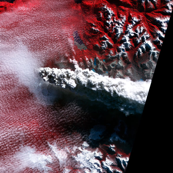 Núi lửa Puyehue-Cordón Caulle của Chilê phóng ra bụi tro cao hàng ngàn mét vào bầu khí quyển. Ảnh do vệ tinh Terra của NASA chụp ngày 11/6.