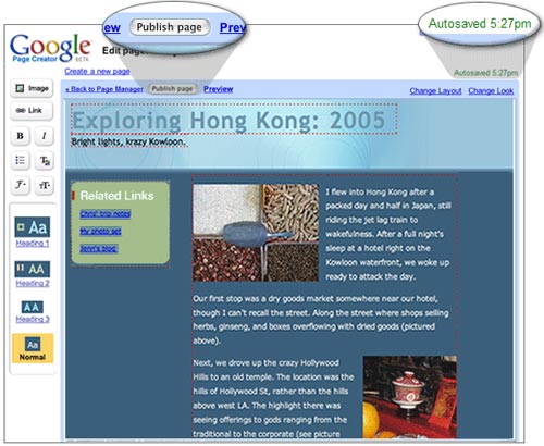 Google PageCreator – Công cụ tạo trang web cá nhân của Google. |