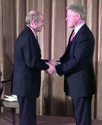 | Giáo sư Jim Cronin và TT Mỹ Bill Clinton (Ảnh: physics.adelaide.edu) |
