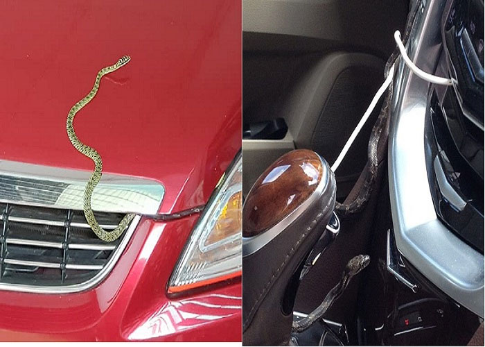 Rắn thường chui vào ô tô để tránh nóng.