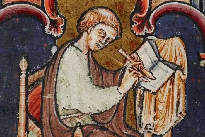 Một học giả viết cách chia chương, đoạn vào văn bản. (Ảnh: Public domain).