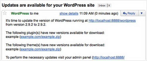 Wordpress có sẵn chức năng thông báo khi có phiên bản mới trong phần quản trị. Tuy nhiên, khi không đăng nhập thường vào phần quản trị (admin) thì Update Notifier sẽ cảnh báo bằng cách gửi email thông báo có phiên bản Wordpress, theme hay plugin mới để bạn tiến hành nâng cấp.