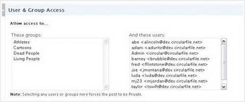 Đây là dạng plugin đơn giản để cấp phép truy cập vào phần gửi tin. WP Sentry tạo ra một khu vực mà các blogger có thể thảo luận thông tin nhạy cảm với nhau mà không lo những "chú nhện" tìm kiếm của Google lần mò tới được.
