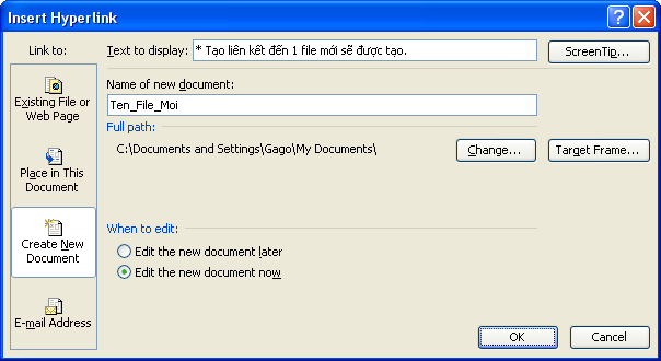 * Tạo liên kết đến 1 file mới sẽ được tạo.