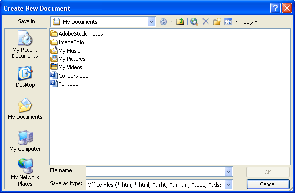 - Name of new document: Đặt tên cho file mới.