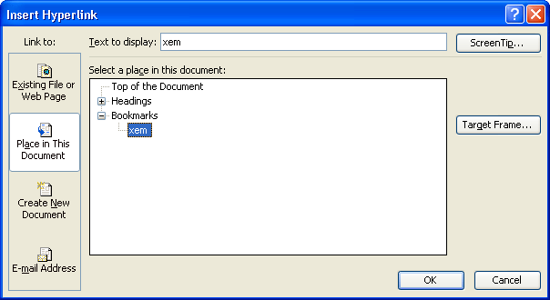 1. Trước hết bạn cần phải đánh dấu (đặt Bookmark hoặc Heading hoặc Style) cho dòng văn bản được link tới.