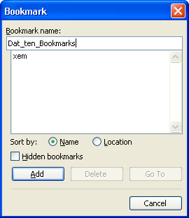3. Xuất hiện hộp thoại Bookmark