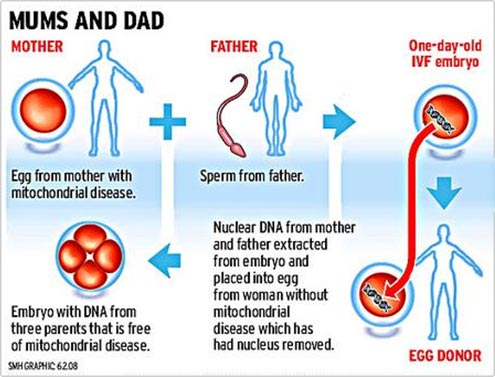 Tiến trình nghiên cứu này nhằm tránh di truyền cho trẻ những gen mitochondria (ti thể) xấu thường nằm bên ngoài nhân của trứng. Mitochondria là nguồn năng lượng của trứng nhưng lỗi trong mã di truyền của chúng có thể gây ra những chứng bệnh nghiêm trọng như động kinh, đột quỵ và thiểu năng.