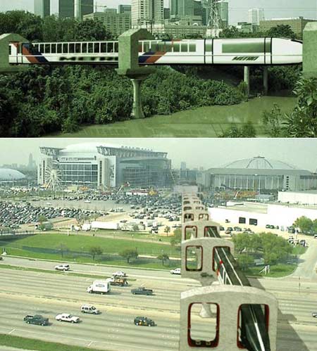 Loại tàu hoả này không có cánh cũng như bất kỳ loại bánh xe nào, cũng không phải chạy trên đệm từ trường. Chúng chạy ở trên cao, cách mặt đất hàng mét. Đó là một cuộc cách mạng trong thiết kế, chế tạo và vận hành tàu hoả.