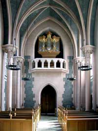 Quanh gian giữa nhà thờ, ở phía Bắc, Đông và Tây, nhưng không hợp nhất vào gian giữa nhà thờ, đại sảnh La Ma một tầng phía trên che phủ bằng một loạt các mái bát úp nhỏ hơn. Vật liệu khảm trong những mái bát úp này được bố trí thành các vòng tròn đồng tâm như kể một mạch chuyện liên tục. Nhỏ về quy mô và vừa đủ chiêm ngưỡng rõ ràng, vật liệu khảm là một trong những công đoạn khiến nhiều người phải say mê so với toàn bộ nhà thờ. Sự tạo thành Chim cá là một ví dụ cho thấy óc sáng tạo phát huy ở mức vô cùng tự do.