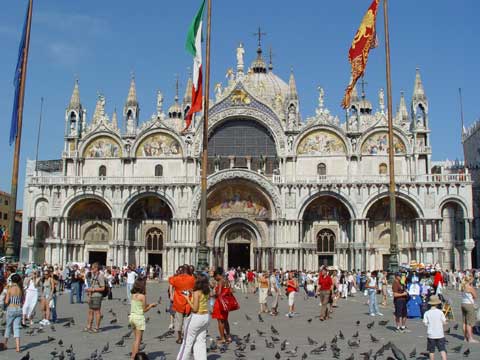 Venice được xây dựng như một nơi an toàn giữa phá nước vào năm 813. Thi thể của Thánh sử Mark bị lấy cắp vì lòng ngoan đạo từ Alexandria, Ai Cập rồi mang về thành phố 828. Trước đây có một nhà thờ được xây dựng để tỏ lòng tôn kính người nhưng đã bị hỏa hoạn thiêu rụi vào năm 976. Nhà thờ hiện nay tiếp giáp với Cung điện của Doge ngày xưa, khởi công xây dựng năm 1063 và được cung hiến năm 1094.