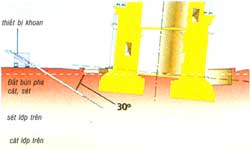 | Bố trí thiết bị khoan hút đất bên dưới cạnh phía Bắc của chân móng tháp. |