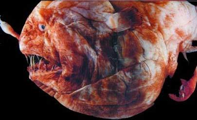 1. Gã ở rể thô bỉ: ở đáy vực sâu vắng “người” không dễ tìm được bạn đồng hành. Bởi thế khi con cá vây chân đực bé con ngửi được mùi của giai nhân khổng lồ to gấp 20 lần, nó lao ngay vào và... không bao giờ nhả ra nữa!