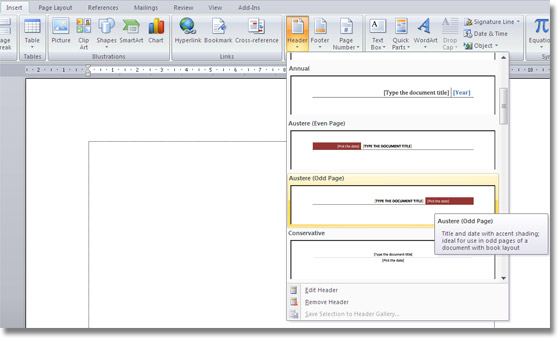 3. Kích Austere (Odd Page) hay bất kì định dạng Header nào đó cho các trang lẻ.