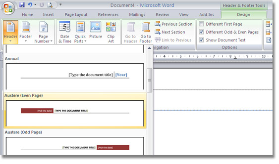 Thêm các tiêu đề trang chẵn và lẻ trên Word 2007