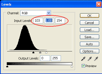 - Image > Adjustments > Levels hoặc Ctrl+L vớí thông số sau: