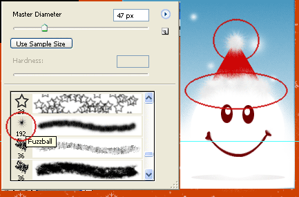 - Chấm một vài Brush trên nền layer "Bong tuyet". (Lúc này, brush sẽ chỉ được tô trong vùng chọn)