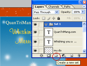 - Click biểu tượng "Creat a new set" bên dưới Palette layer => xuất hiện một layer set có tên "set 1"