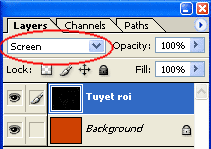 - Nhấn tổ hợp phím Ctrl + Backspace để chuyển background layer "tuyet roi" thành mầu đen