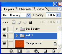 - Chuột phải layer "set 1" > Duplicate layer set > ta có được "set 1 copy"