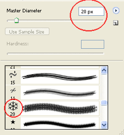 (bạn có thể tìm thấy brush hoa tuyết trên tệp Assorted brushes của menu pop-up trên Palette Brushes)