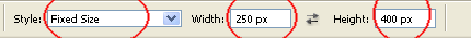- Chọn công cụ Rectangular Marquee Tool > kích thước: 250 x 400