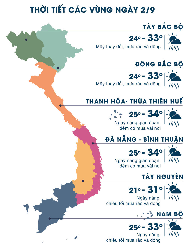 Thời tiết kỳ nghỉ lễ 2/9 tại các vùng trên cả nước.