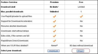 Một vấn đề thứ 2 cần lưu tâm khi download từ Rapidshare, đó là sự “phân biệt đối xử” giữa dịch vụ miễn phí (free) và dịch vụ có trả phí. Đối với tài khoản có trả phí, bạn sẽ không gặp những phiền tóai khi download, không phải chờ đồng hồ đếm ngược khi download… như sử dụng dịch vụ miễn phí. Tuy nhiên, phần lớn người sử dụng hiện nay đều chọn dịch vụ miễn phí để download từ Rapidshare. Tuy nhiên với những thủ thuật và công cụ hỗ trợ sau, hy vọng bạn có thể cải thiện được những bất tiện khi download từ Rapidshare bằng dịch vụ miễn phí.