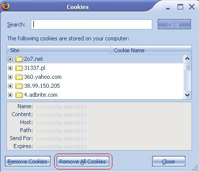 - Công việc tiếp theo của bạn là xóa sạch cookies của trình duyệt bạn đang sử dụng để coi như làm mới hoàn toàn máy tính của mình.