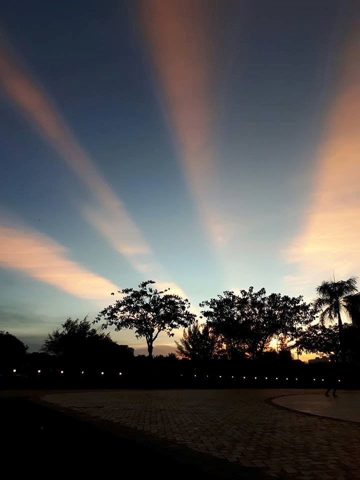 Tia rẻ quạt nhìn từ cầu Bùi Hữu Nghĩa, quận Bình Thạnh. "Khi chụp bức ảnh, cảm thấy Sài Gòn thật đẹp và yên bình", tác giả Hạo Thái cho biết. Sau khi xem những hình ảnh này, ông Lê Đình Quyết, Phó phòng dự báo khí tượng Đài khí tượng thủy văn khu vực Nam Bộ, cho rằng hiện tượng này nhìn khá thú vị nhưng không có gì kỳ bí. Đây là loại mây trung tích có tên gọi mây Ac (Altocumulus), có độ cao trung bình từ 2,5-6 km. Với loại mây này thường cho thời tiết tốt, không mưa, thỉnh thoảng xuất hiện tán mặt trời hay tán mặt trăng. (Ảnh: Hạo Thái Channel).