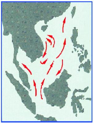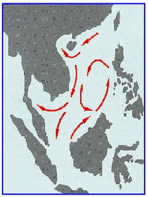 Với gió mùa đông bắc (từ tháng mười một đến tháng ba), nước biển xoay theo chiều kim đồng hồ xuống phía nam đến bờ biển phía bắc đảo Borneo, rồi trở ngược lên dọc theo bờ biển phía tây bán đảo Mã Lai và Thái Lan, rồi hướng đến Việt Nam (ảnh 2).