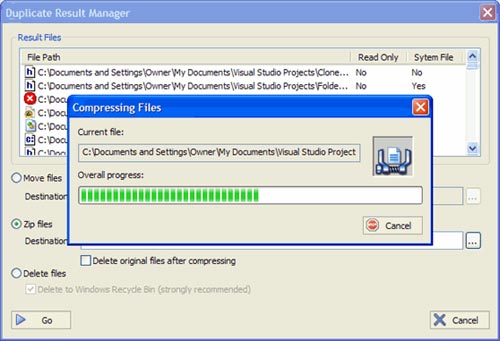 - Để giải phóng thêm dung lượng cho đĩa cứng cũng như tiện bề quản lý file, bạn nên xóa bớt đi những file trùng lặp không cần thiết hoặc nén chúng lại để “từ từ tính tiếp”. Đánh dấu vào toàn bộ các file không cần dùng trong danh sách mà DFD đã liệt kê -> muốn xóa hẳn thì nhấn vào nút “Delete”; muốn nén chúng lại thì nhấn vào nút “Zip”; còn muốn di chuyển chúng vào một thư mục nào đó thì bạn nhấn vào nút “Move”.