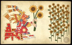 Các nhà nghiên cứu đã tìm thấy bằng chứng rằng cây hướng dương, Helianthus annuus, có lịch sử khai hóa và trồng trọt lâu đời tại Mexico, xuất hiện trước khi Tây Ban Nha xâm lược vào những năm đầu thế kỷ 16. Bằng chứng cho thấy cây hướng dương đã được trồng ở đây từ những năm 2600 trước công nguyên. Bức tranh trên thể hiện hiểu biết của người họa sĩ về lịch sử của loài cây này, liên quan đến những đồ tạo tác Aztec đã biến mất từ lâu. (Ảnh: Zina Deretsky, Quỹ khoa học quốc gia) |