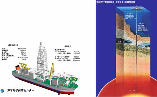 Theo dự kiến, con tàu mang tên Chikyu của Nhật, với các thiết bị thăm dò hiện đại nhất từ trước đến nay, sẽ ra vùng biển Nankai Trough (Nhật) để khoan sâu vào trái đất 7 km tính từ đáy đại dương. Đây là độ sâu cao gấp 3 lần so với kỷ lục trước đây. Sau đó, các thiết bị kỹ thuật sẽ mang về các mẫu đất ở gần tâm trái đất để các nhà khoa học nghiên cứu về sự sống ở đây. Về mặt lý thuyết, sự sống có thể bắt nguồn ở dưới lớp vỏ trái đất ở một nhiệt độ và áp lực hoàn toàn khác với trên bề mặt trái đất hay đại dương. Có người cũng cho rằng có thể địa nhiệt, chứ không phải năng lượng mặt trời, đã tạo ra mẫu sống đầu tiên. Ngoài ra, tàu Chikyu còn tìm hiểu nguồn gốc của động đất cũng như đưa các thiết bị cảm biến vào trong lớp vỏ trái đất, từ đó dự kiến sẽ thiết lập một hệ thống báo động hiệu quả cho Nhật và khu vực Đông Á. Chi phí để thiết kế con tàu là 620 triệu USD và mỗi năm hoạt động của nó sẽ ngốn thêm gần 90 triệu USD. (Times)