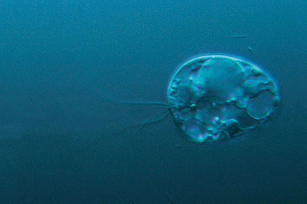 Nó có 4 roi, là bộ phận giống mái chèo có tác dụng đẩy cơ thể về phía trước, và chỉ có thể quan sát được bằng kính hiển vi với chiều dài cơ thể 30-50 micromét (1 micromét bằng một phần triệu mét).