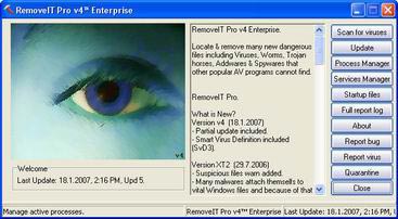 RemoveIT Pro Enterprise 4.1 là chương trình tìm và xóa các file hoặc các đoạn mã có thể gây hại cho dữ liệu hoặc các ứng dụng trong hệ thống máy tính. Điểm khác biệt của RemoveIT Pro Enterprise 4.1 so với các chương trình diệt virus là khả năng “nhìn thấy” những file nguy hiểm như Malware, Worm, Trojan horse, Adware & Spyware mà các chương trình diệt virus thông thường không phát hiện được.